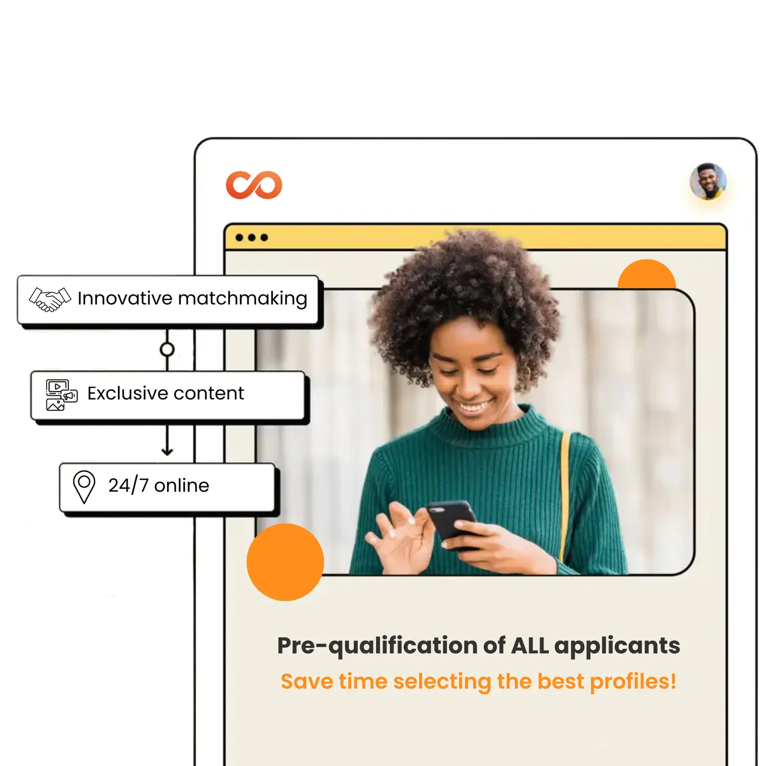 Stop dealing with superficial leads or leads that don't meet your requirements! Concentrate solely on the most qualified leads. We give you detailed briefs directly from the most determined candidates. How do we do it? Our team of experts and our innovative matchmaking algorithms personally pre-qualify all candidates.