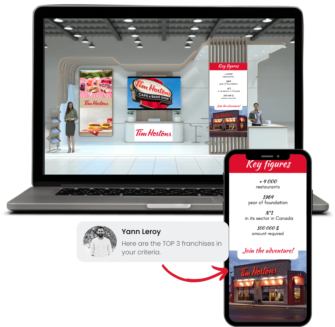 Showcase your franchisor brand on a stand in your own colors. Showcase your identity in a space entirely dedicated to your brand. Customize your stand to stand out and attract candidates who share your network's values.